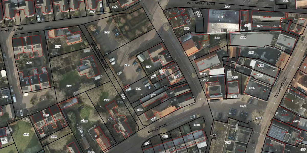 Gebruik de zoekbalk of klik op een perceel om informatie over het perceel te bekijken.