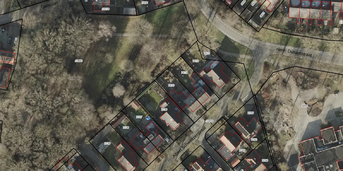 Gebruik de zoekbalk of klik op een perceel om informatie over het perceel te bekijken.
