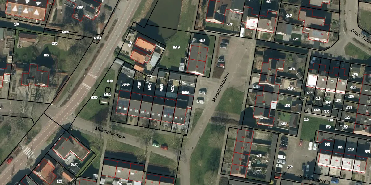 Gebruik de zoekbalk of klik op een perceel om informatie over het perceel te bekijken.