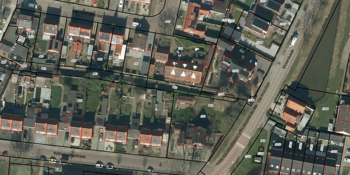 Gebruik de zoekbalk of klik op een perceel om informatie over het perceel te bekijken.
