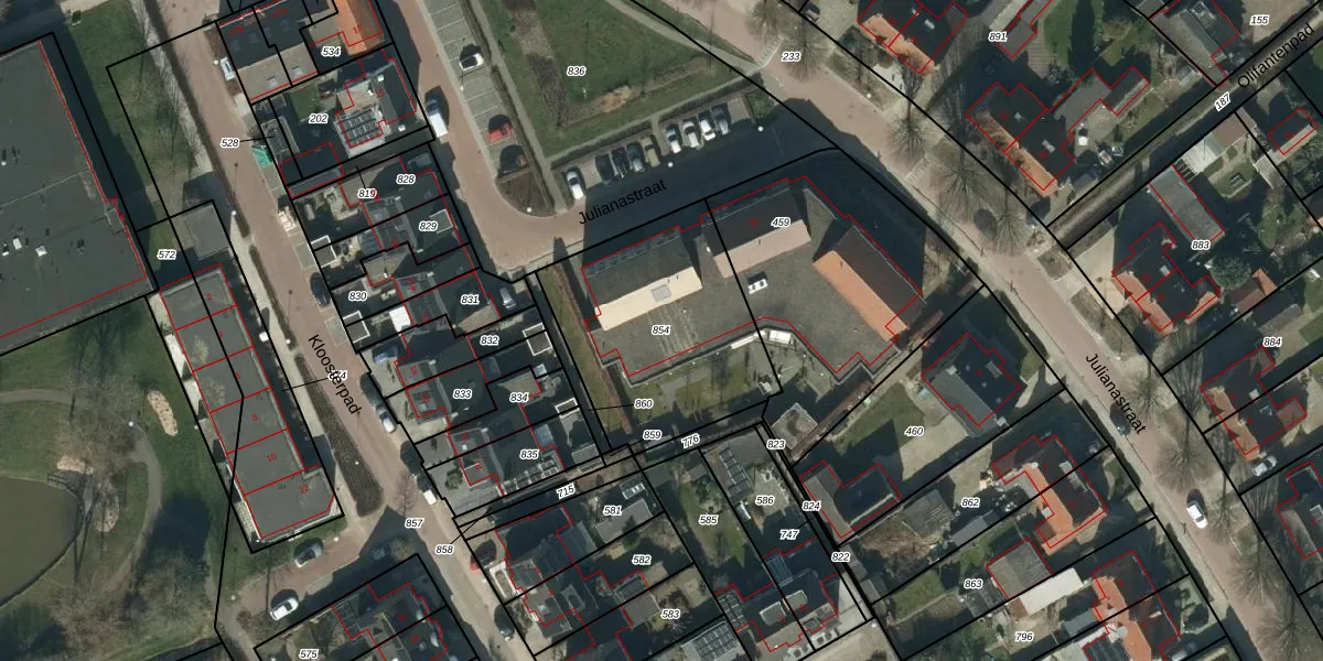 Gebruik de zoekbalk of klik op een perceel om informatie over het perceel te bekijken.
