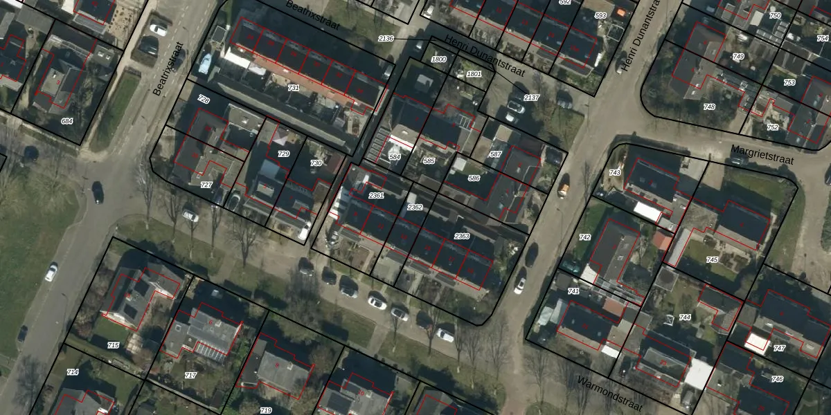 Gebruik de zoekbalk of klik op een perceel om informatie over het perceel te bekijken.