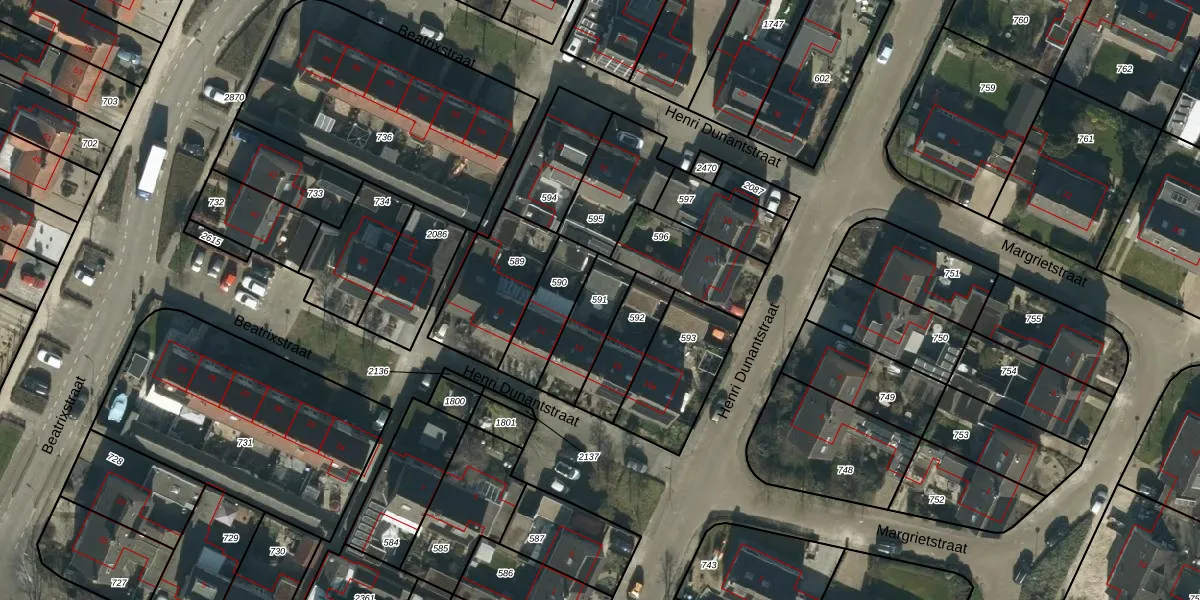 Gebruik de zoekbalk of klik op een perceel om informatie over het perceel te bekijken.