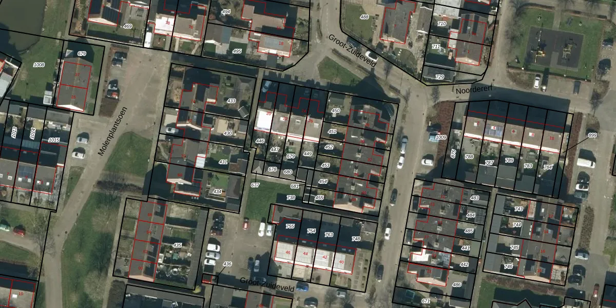 Gebruik de zoekbalk of klik op een perceel om informatie over het perceel te bekijken.