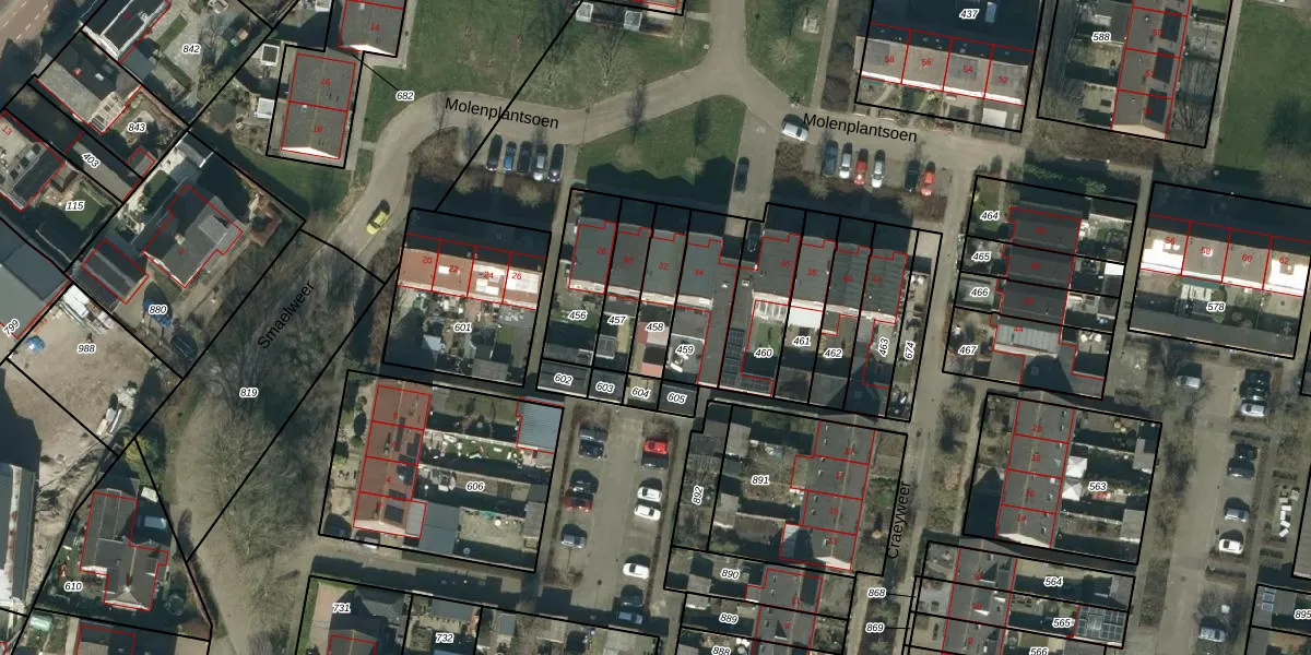 Gebruik de zoekbalk of klik op een perceel om informatie over het perceel te bekijken.