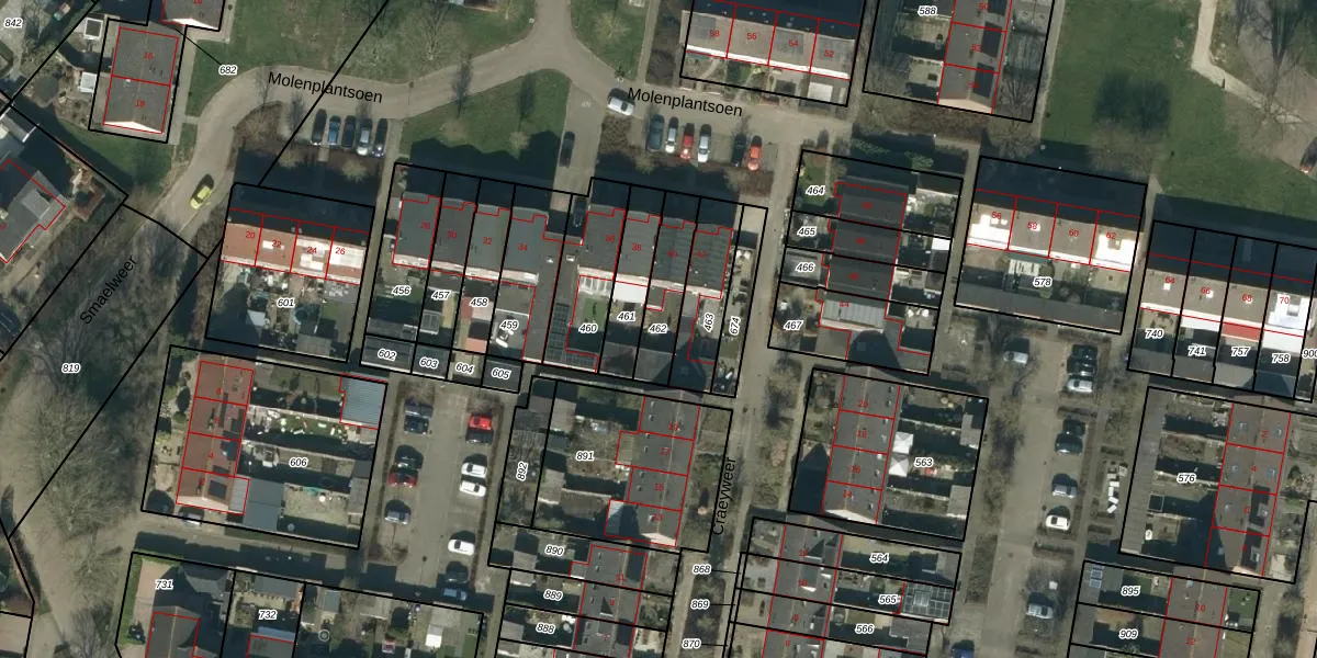 Gebruik de zoekbalk of klik op een perceel om informatie over het perceel te bekijken.
