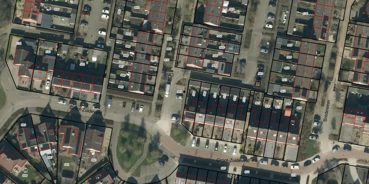 Gebruik de zoekbalk of klik op een perceel om informatie over het perceel te bekijken.