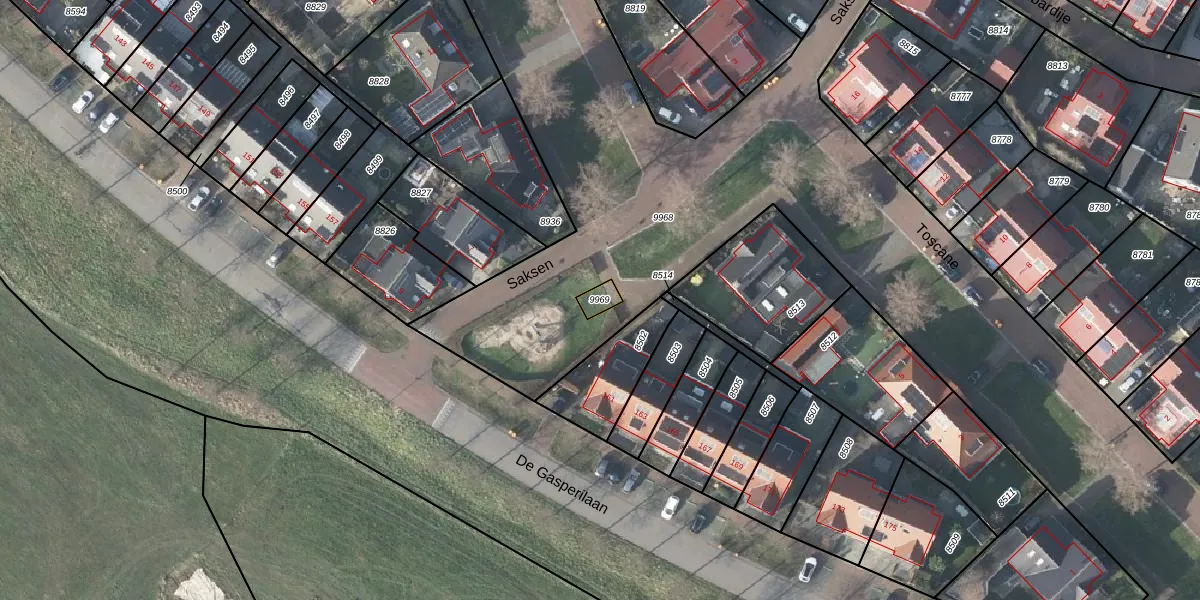 Gebruik de zoekbalk of klik op een perceel om informatie over het perceel te bekijken.