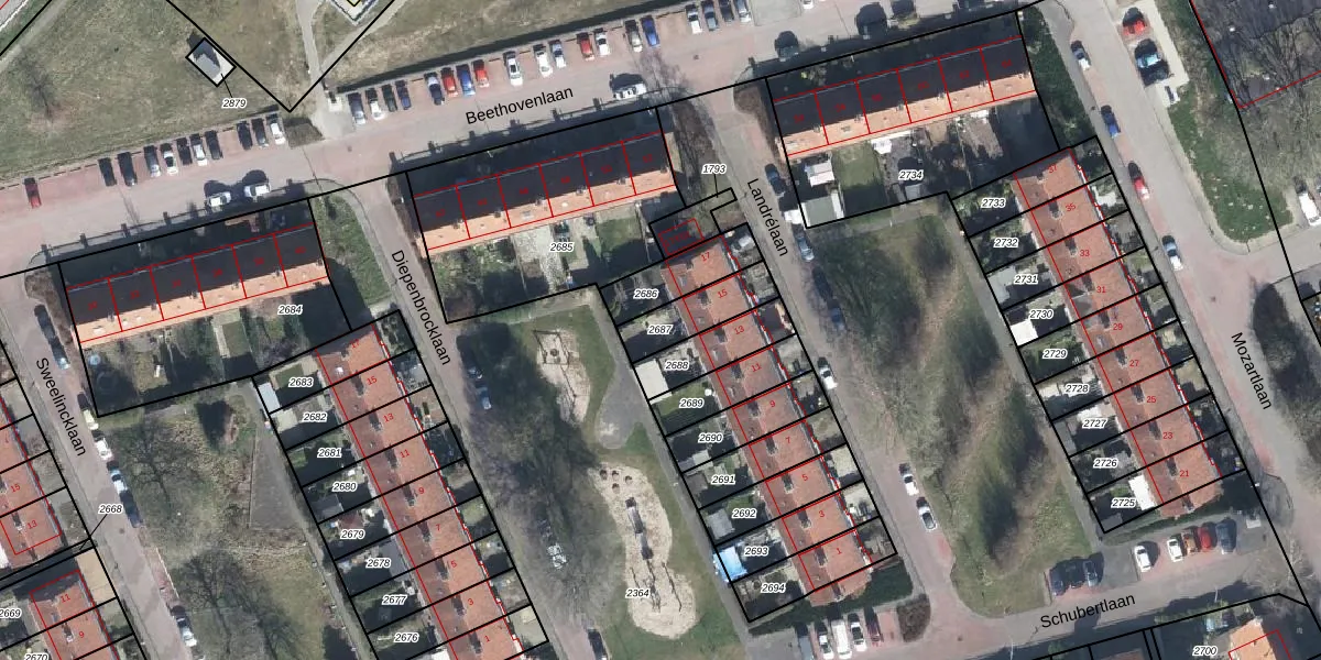 Gebruik de zoekbalk of klik op een perceel om informatie over het perceel te bekijken.