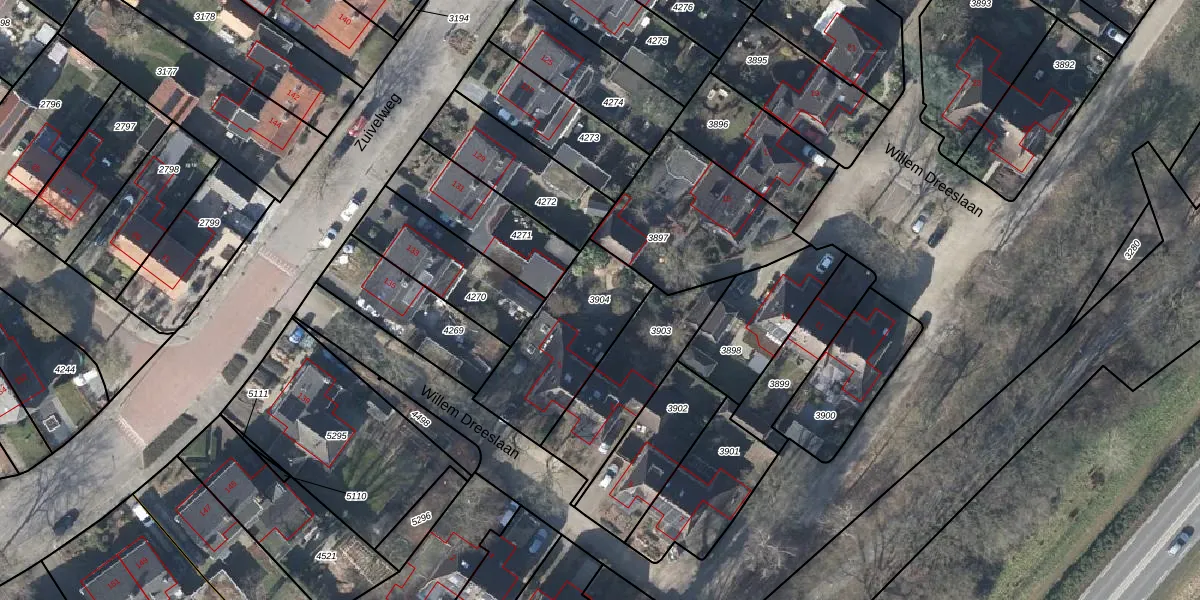 Gebruik de zoekbalk of klik op een perceel om informatie over het perceel te bekijken.