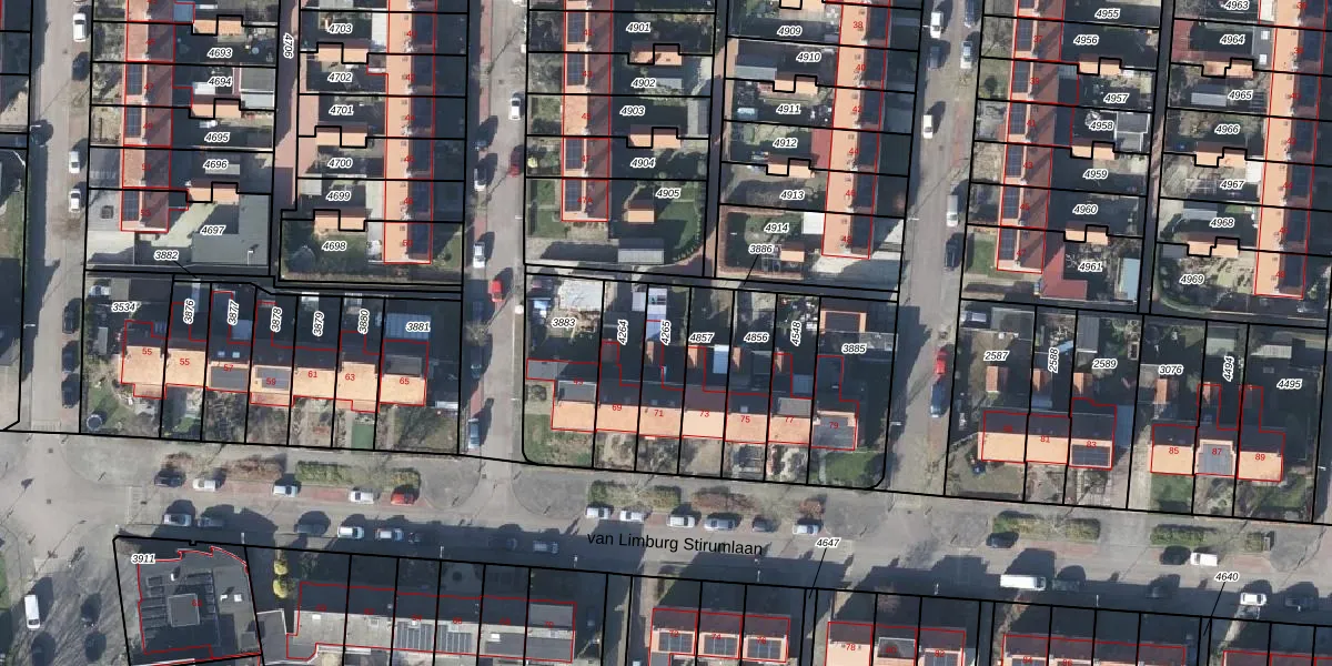 Gebruik de zoekbalk of klik op een perceel om informatie over het perceel te bekijken.