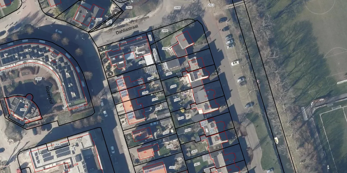 Gebruik de zoekbalk of klik op een perceel om informatie over het perceel te bekijken.