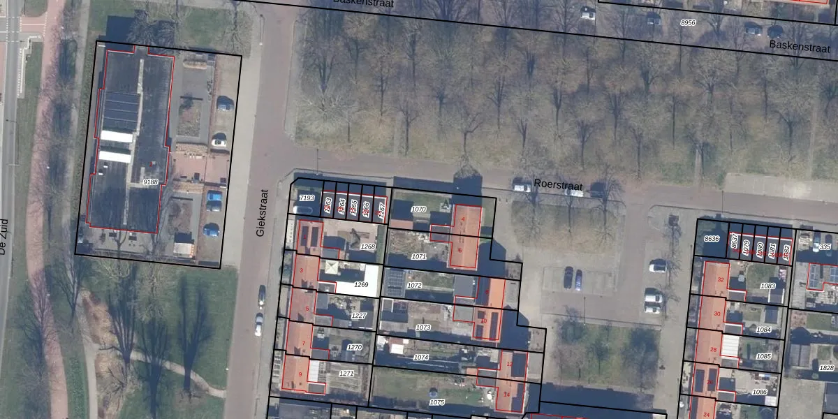 Gebruik de zoekbalk of klik op een perceel om informatie over het perceel te bekijken.