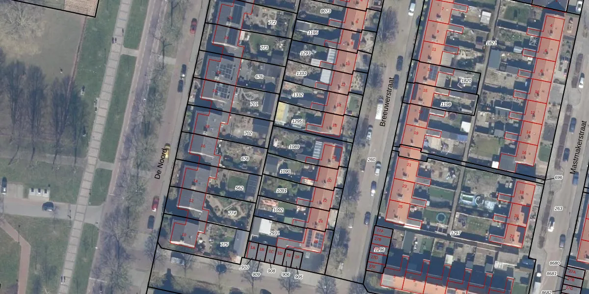 Gebruik de zoekbalk of klik op een perceel om informatie over het perceel te bekijken.