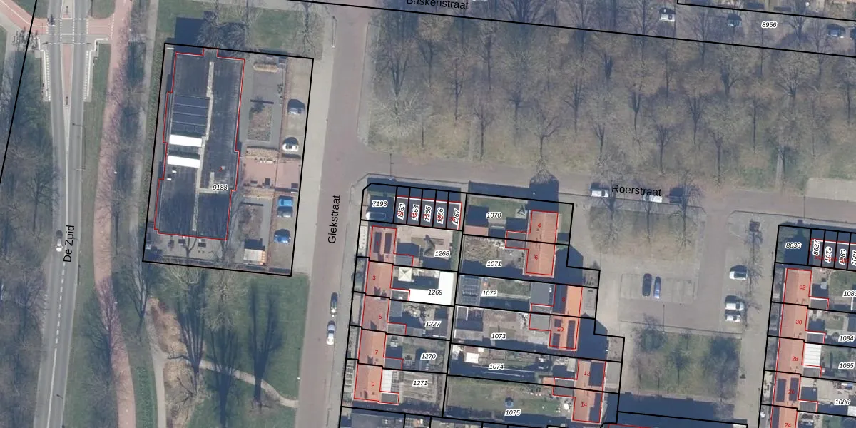 Gebruik de zoekbalk of klik op een perceel om informatie over het perceel te bekijken.