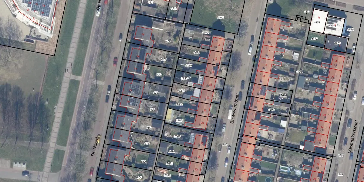 Gebruik de zoekbalk of klik op een perceel om informatie over het perceel te bekijken.