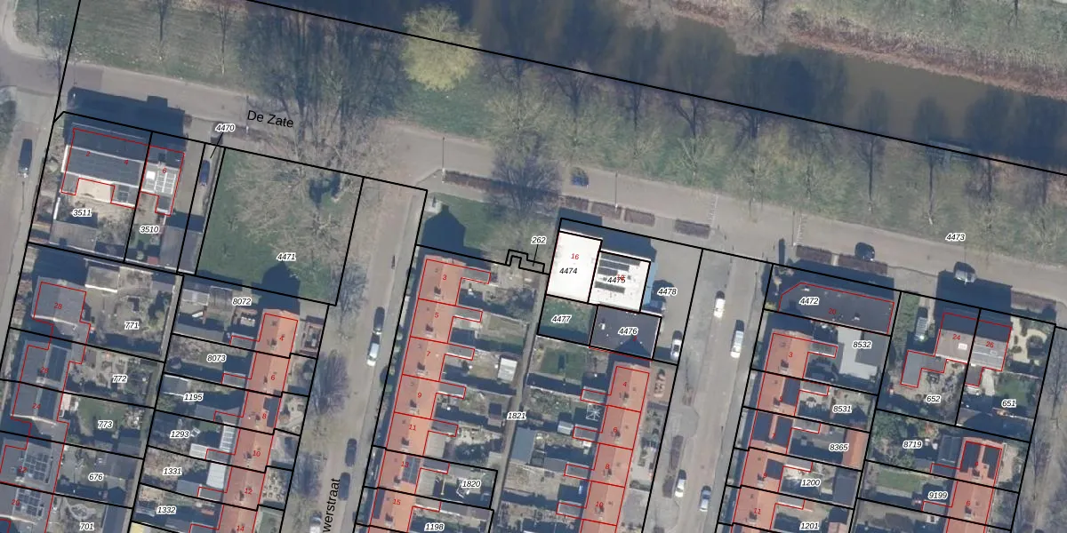 Gebruik de zoekbalk of klik op een perceel om informatie over het perceel te bekijken.