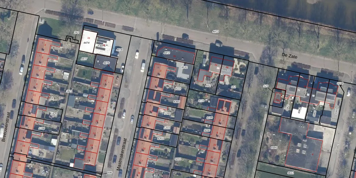 Gebruik de zoekbalk of klik op een perceel om informatie over het perceel te bekijken.