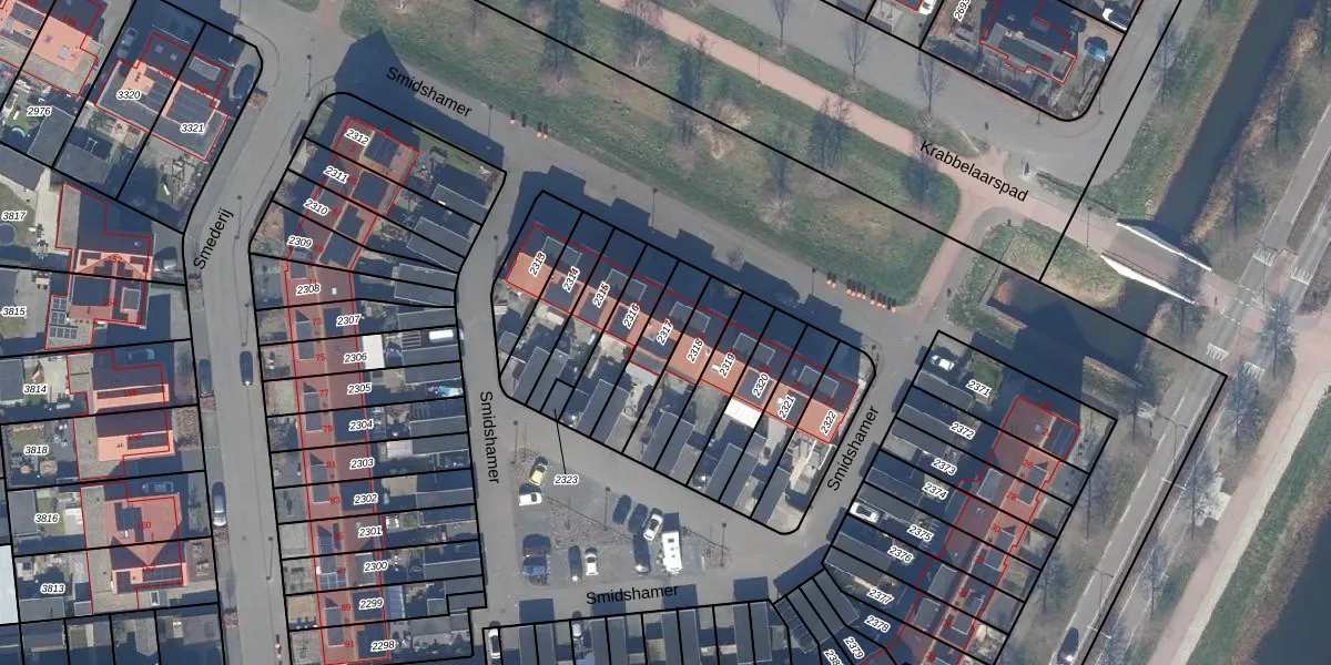 Gebruik de zoekbalk of klik op een perceel om informatie over het perceel te bekijken.