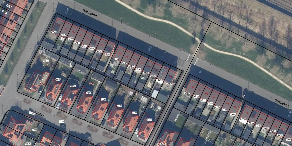 Gebruik de zoekbalk of klik op een perceel om informatie over het perceel te bekijken.