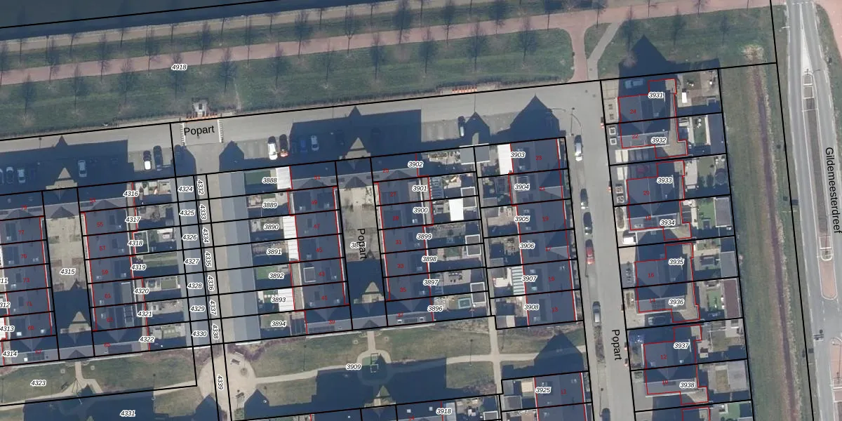 Gebruik de zoekbalk of klik op een perceel om informatie over het perceel te bekijken.