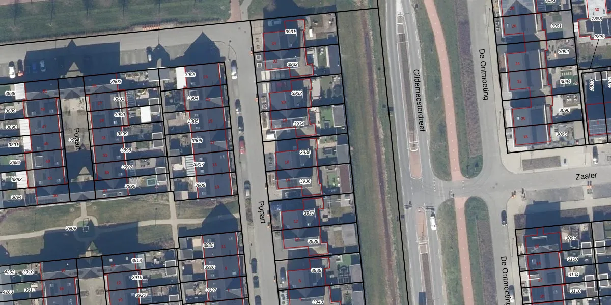Gebruik de zoekbalk of klik op een perceel om informatie over het perceel te bekijken.