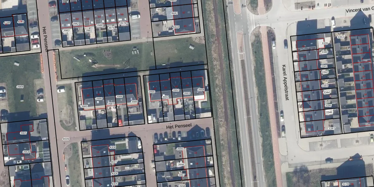 Gebruik de zoekbalk of klik op een perceel om informatie over het perceel te bekijken.