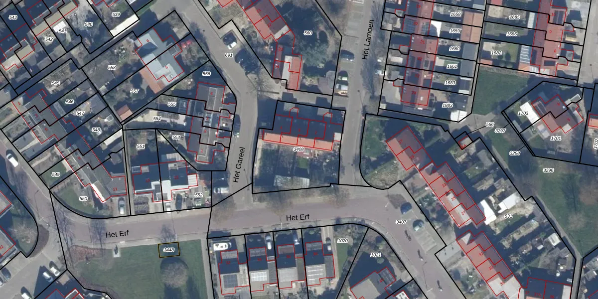 Gebruik de zoekbalk of klik op een perceel om informatie over het perceel te bekijken.