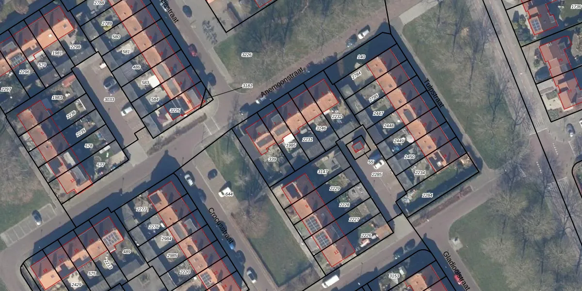 Gebruik de zoekbalk of klik op een perceel om informatie over het perceel te bekijken.