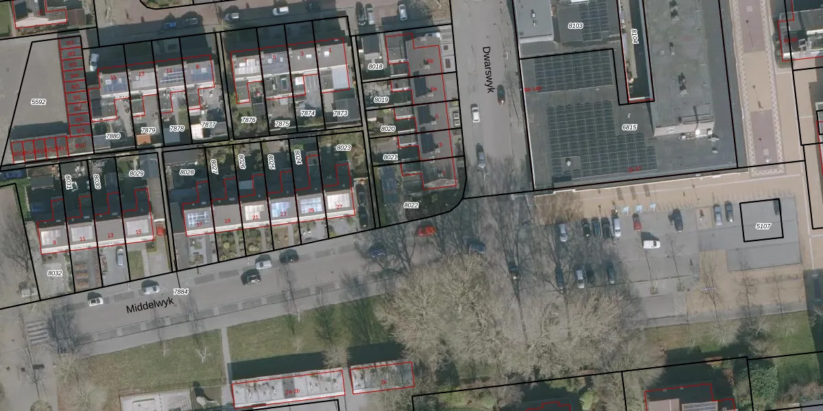 Gebruik de zoekbalk of klik op een perceel om informatie over het perceel te bekijken.