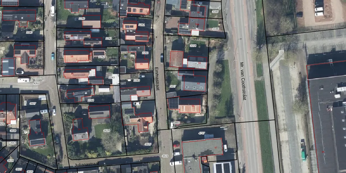 Gebruik de zoekbalk of klik op een perceel om informatie over het perceel te bekijken.