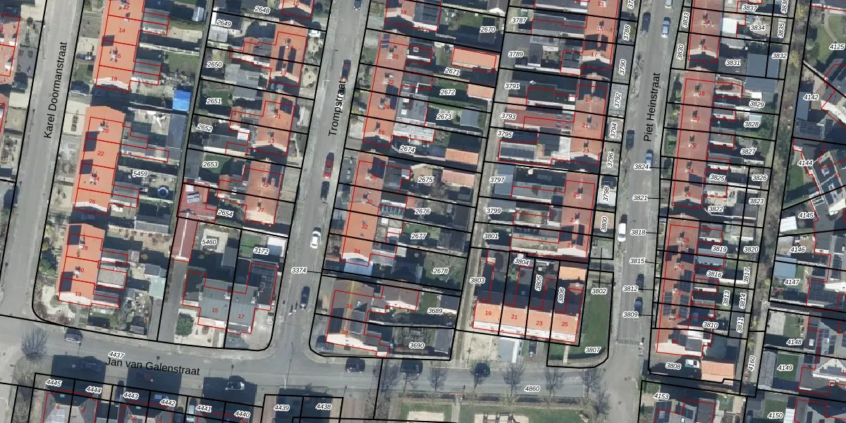 Gebruik de zoekbalk of klik op een perceel om informatie over het perceel te bekijken.