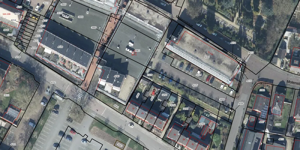 Gebruik de zoekbalk of klik op een perceel om informatie over het perceel te bekijken.