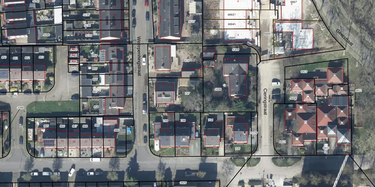 Gebruik de zoekbalk of klik op een perceel om informatie over het perceel te bekijken.