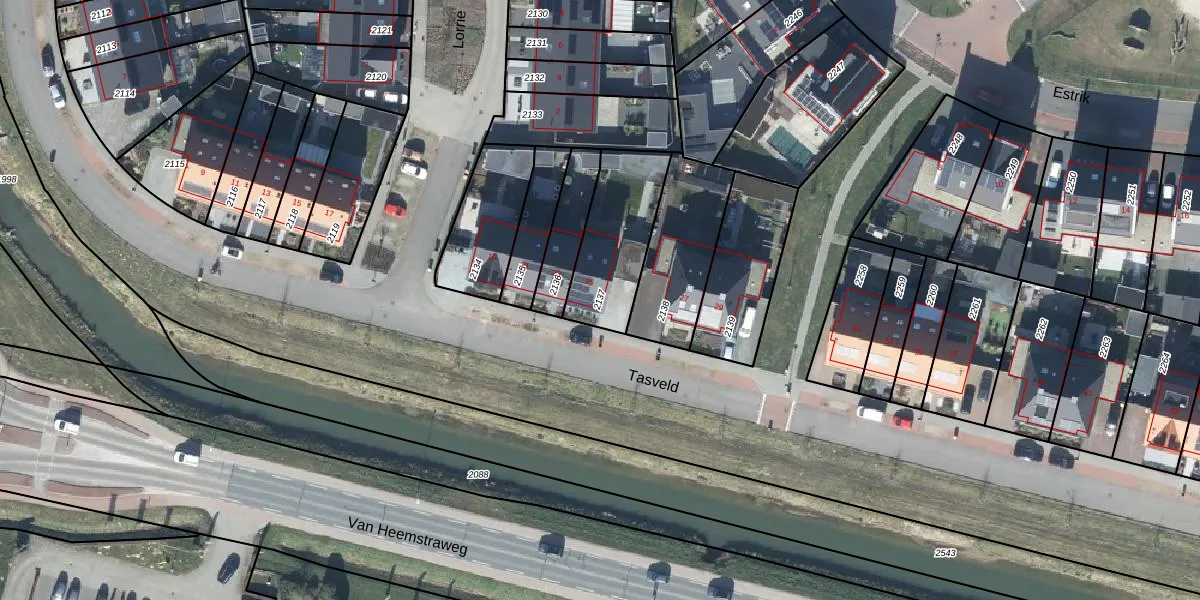 Gebruik de zoekbalk of klik op een perceel om informatie over het perceel te bekijken.