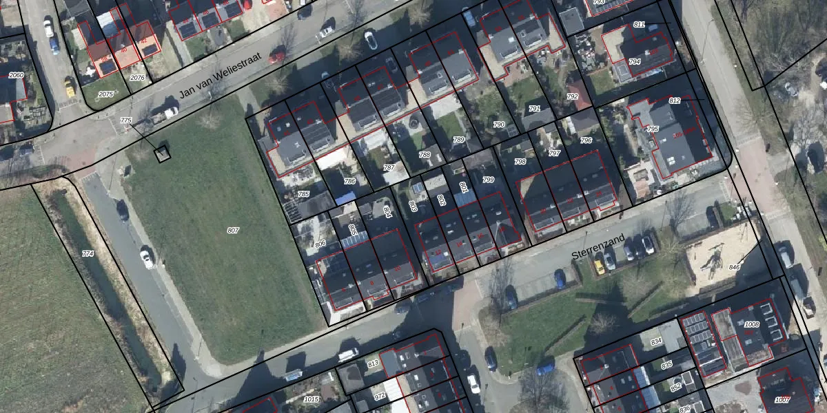 Gebruik de zoekbalk of klik op een perceel om informatie over het perceel te bekijken.