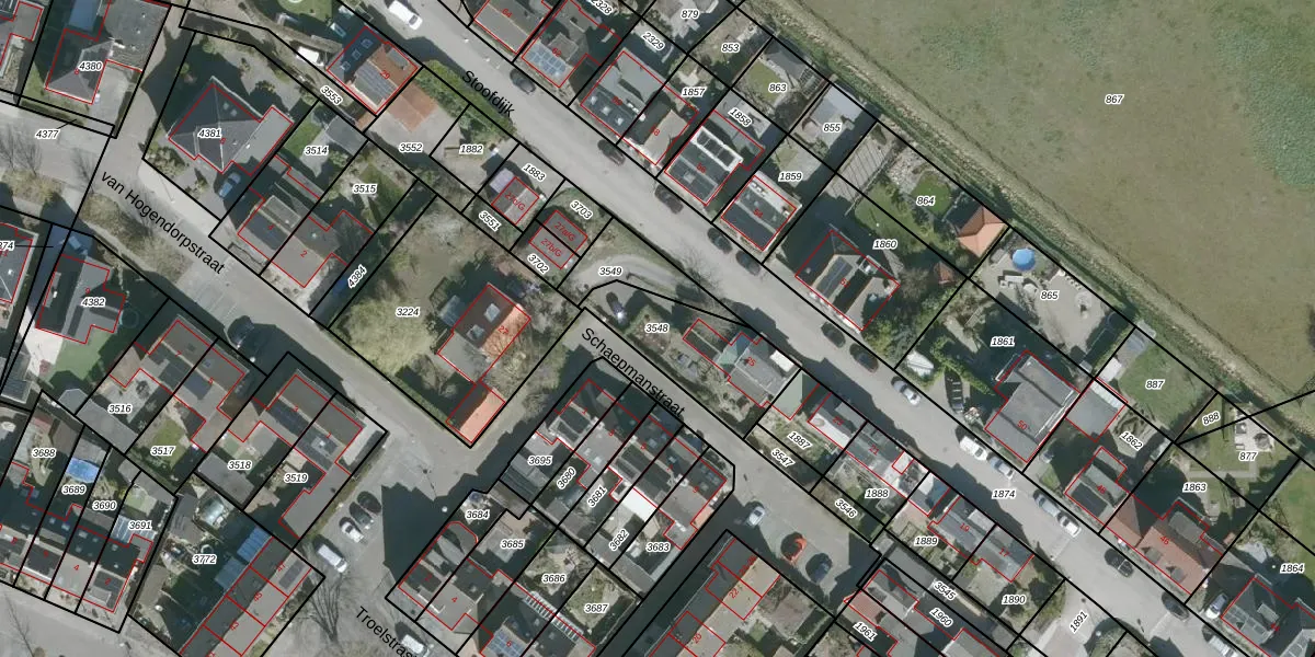 Gebruik de zoekbalk of klik op een perceel om informatie over het perceel te bekijken.