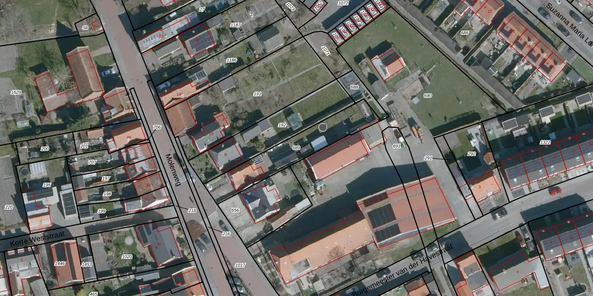 Gebruik de zoekbalk of klik op een perceel om informatie over het perceel te bekijken.