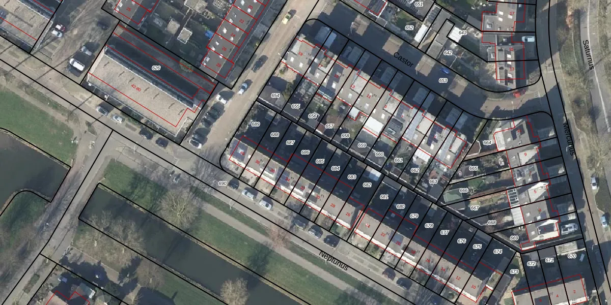 Gebruik de zoekbalk of klik op een perceel om informatie over het perceel te bekijken.