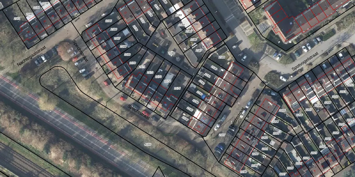 Gebruik de zoekbalk of klik op een perceel om informatie over het perceel te bekijken.