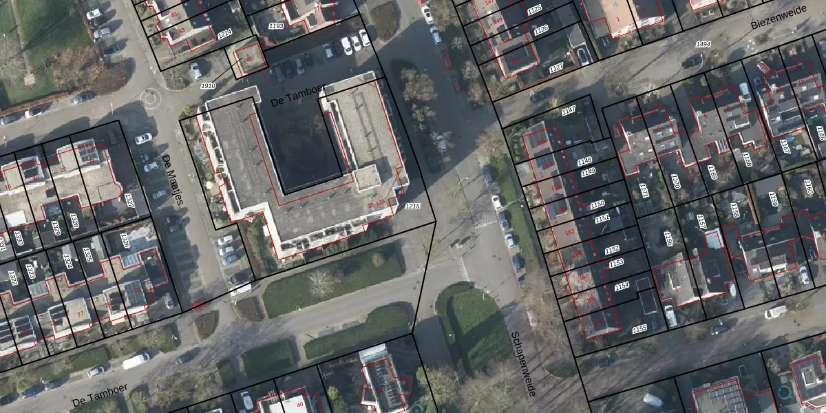 Gebruik de zoekbalk of klik op een perceel om informatie over het perceel te bekijken.