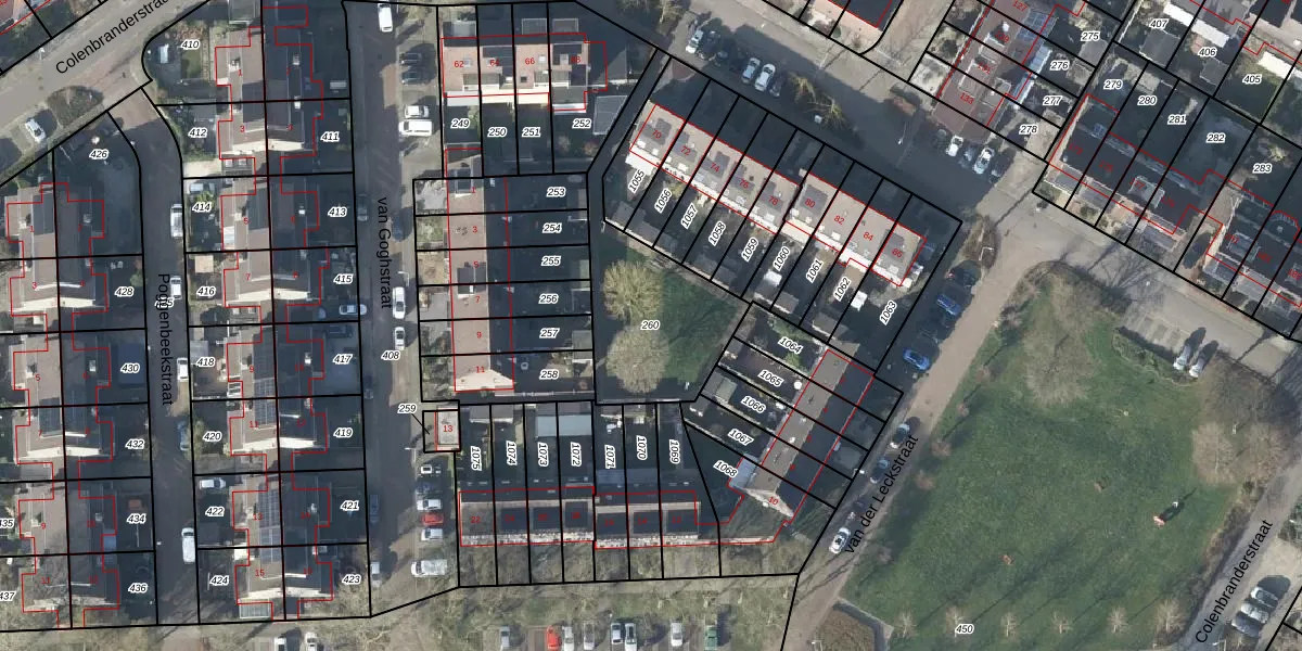 Gebruik de zoekbalk of klik op een perceel om informatie over het perceel te bekijken.