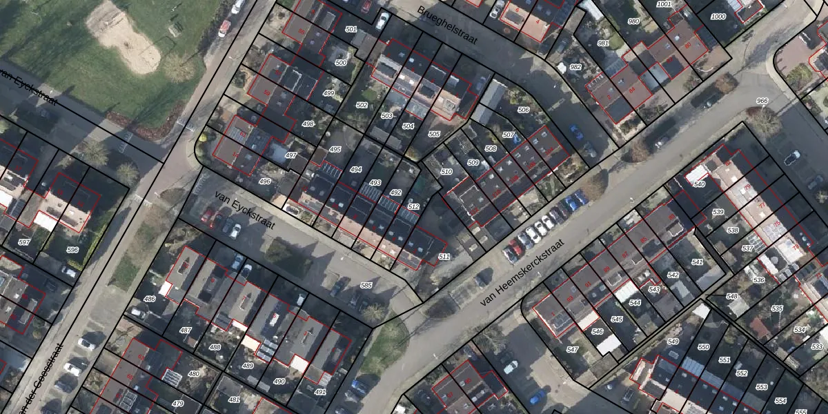 Gebruik de zoekbalk of klik op een perceel om informatie over het perceel te bekijken.