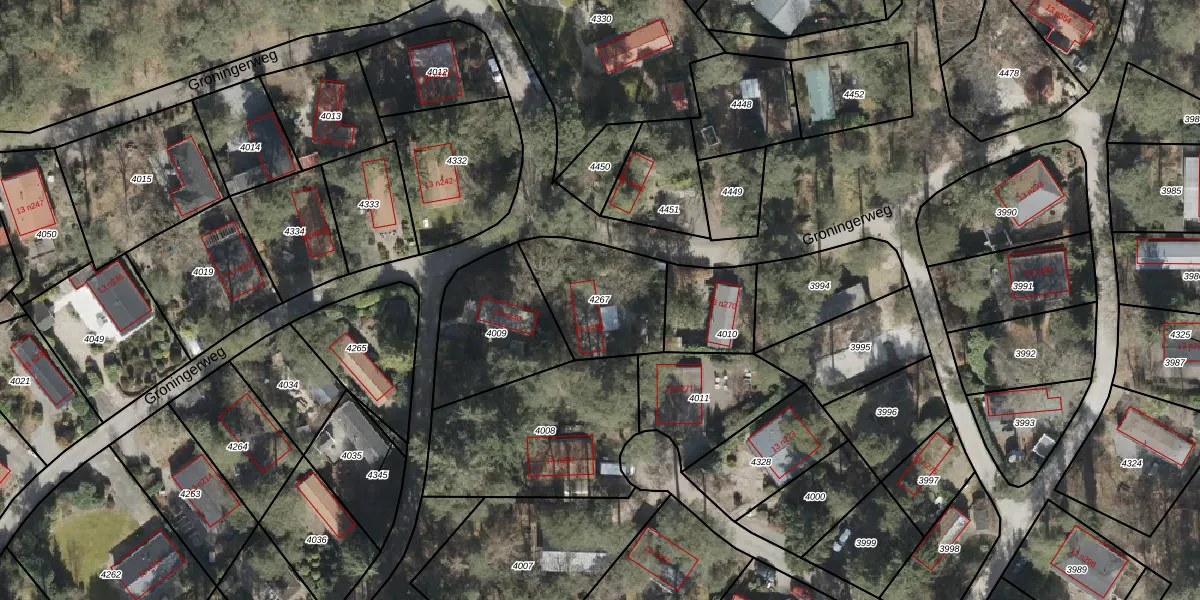 Gebruik de zoekbalk of klik op een perceel om informatie over het perceel te bekijken.