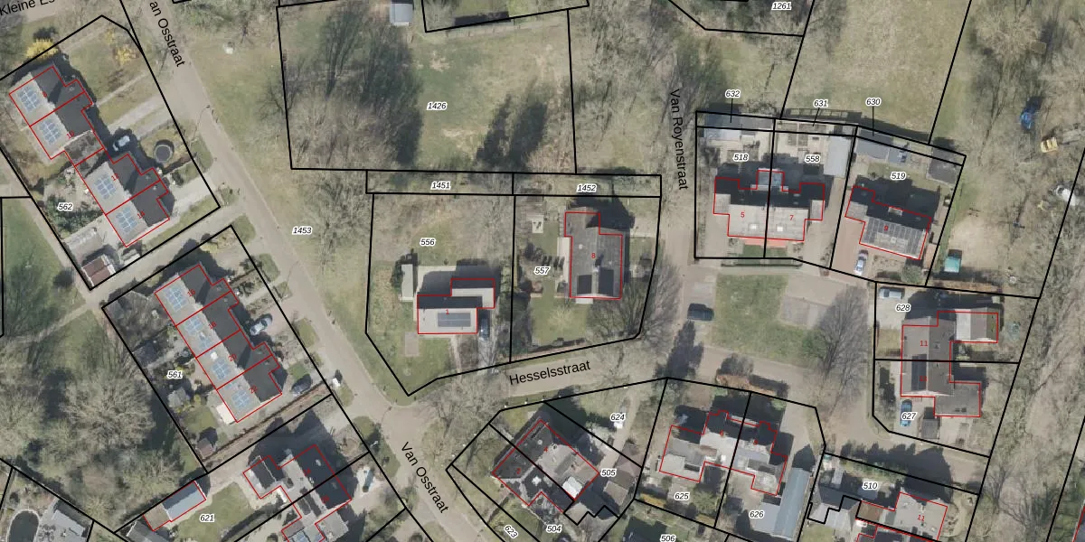 Gebruik de zoekbalk of klik op een perceel om informatie over het perceel te bekijken.