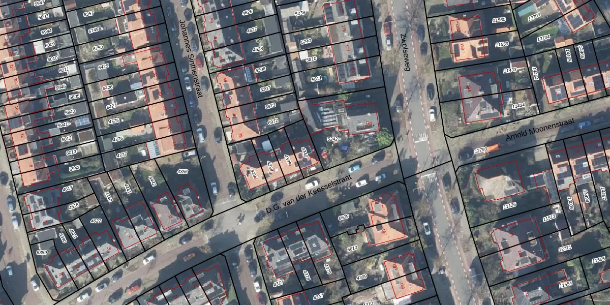 Gebruik de zoekbalk of klik op een perceel om informatie over het perceel te bekijken.