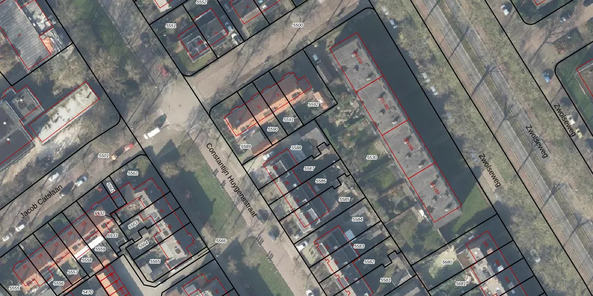 Gebruik de zoekbalk of klik op een perceel om informatie over het perceel te bekijken.