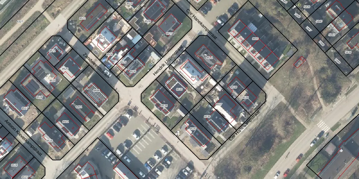 Gebruik de zoekbalk of klik op een perceel om informatie over het perceel te bekijken.