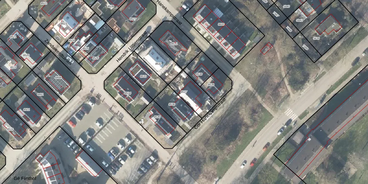 Gebruik de zoekbalk of klik op een perceel om informatie over het perceel te bekijken.