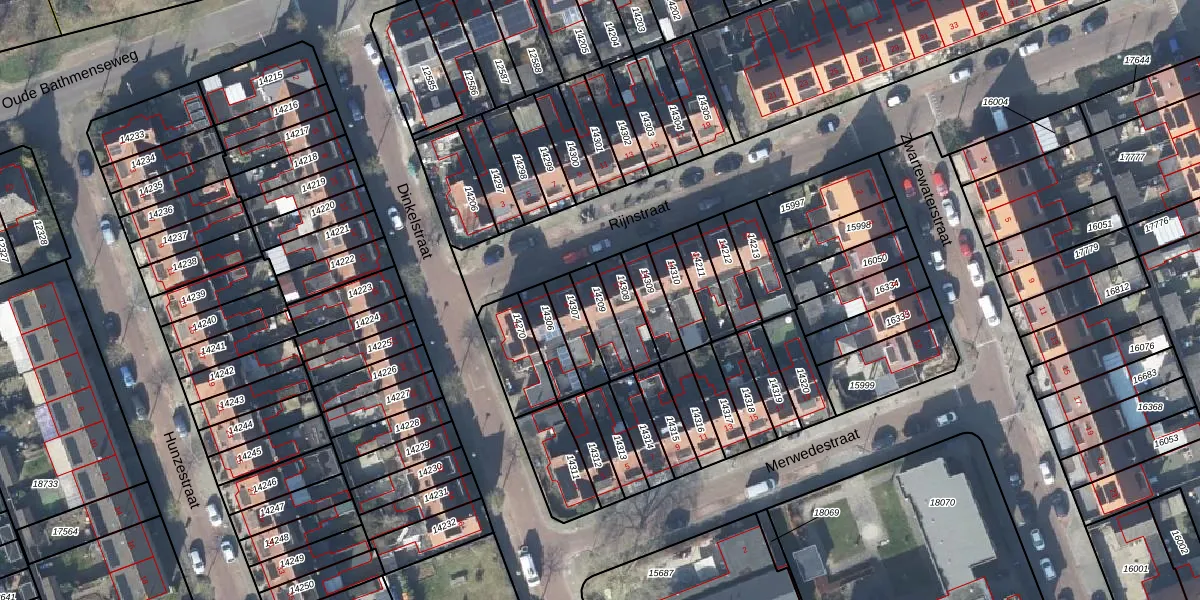 Gebruik de zoekbalk of klik op een perceel om informatie over het perceel te bekijken.